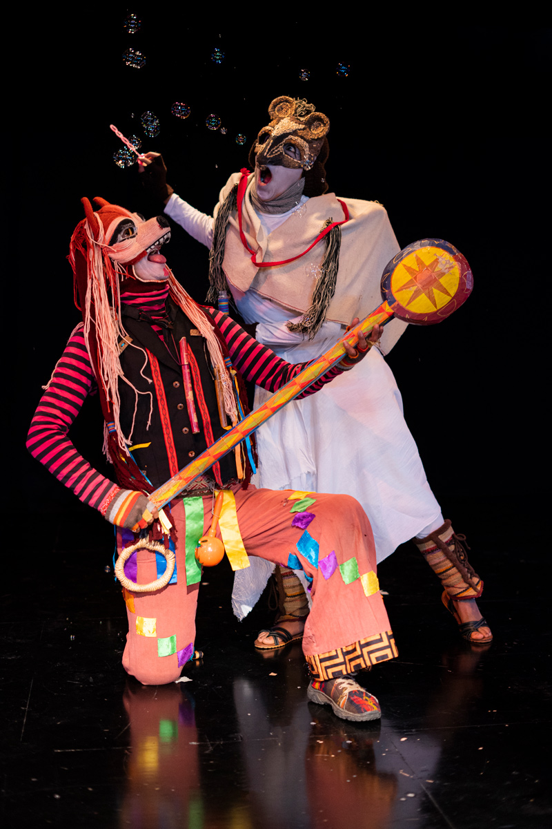 La obra de teatro Fes-tivo: Memorias del Fuego… Los Colores explora nuestra tradición mítico-simbólica y revela la profunda sabiduría ancestral. La historia sigue al Hatun Yaya, el Abuelo del pueblo, y su nieta Tapir, quienes emprenden un viaje en busca de la Memoria Sagrada, ya que los niños y niñas de su pueblo han perdido la capacidad de soñar, pues algo o alguien ha robado sus almas.